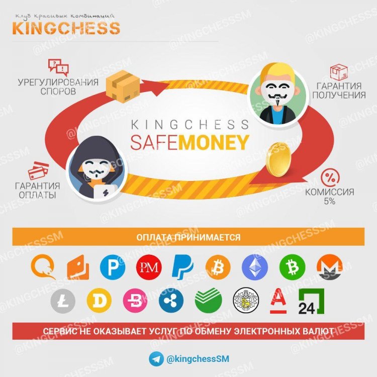 Если и Вы собрались купить/продать, какой-то товар в Рунете, значит, обязательно пользуйтесь гарантом и сэкономьте свои нервы и деньги. Используйте KINGCHESS SAFE MONEY, проверенный гарант в Инете.