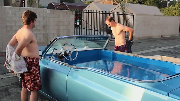 Интересное применение для старых автомобилей. Не знаю, многие ли захотят сделать такое же из своего авто или же сдадут его на металлолом. Здесь ведь тоже нужно приложить не малые усилия, чтобы переделать авто на бассейн.